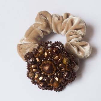 Beads are an inexhaustible material for creativity, it is difficult to name the type of needlework where the beads could not be used. Decorative elements are made of it - flowers, butterflies, bows, with which gum is decorated. Also, the beads are sewn onto bulk elastic bands from the fabric; a beautiful option for every day is obtained.