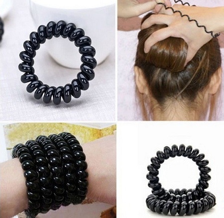 In the past few years, there has been a real boom in cool silicone rubber bands in the form of a telephone wire. They are called differently - springs, coils, wires. One thing remains unchanged - reliable hair fixation, lack of headache and injured hair.
