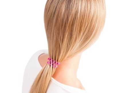 Elastic band, without hesitation, can be called the most popular hair accessory. It looks like an elastic ring, most often made of rubber, and in essence is a special device for fixing the hairstyle.