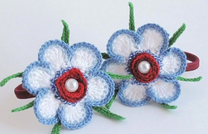 Such elastic bands look very interesting and go well with knitted dresses and voluminous sweaters. It can be a knitted elastic band-ring or a thin elastic band with a decorative knitted element - a flower, a bow.