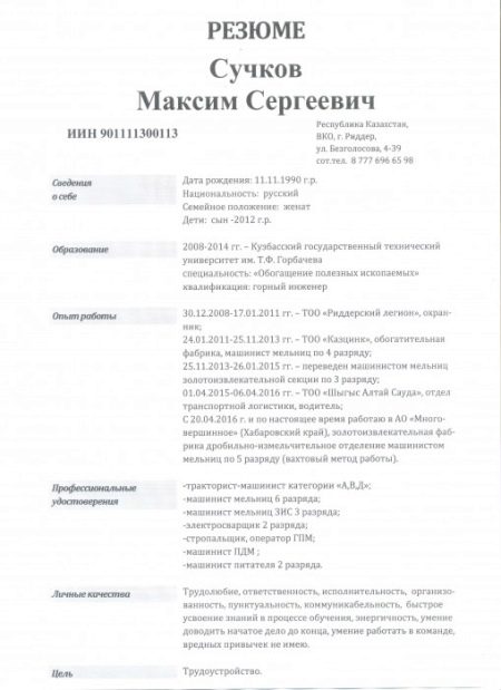 - A brief and understandable resume with a minimalistic design that contains all the necessary information. In addition, the applicant attached his photo.