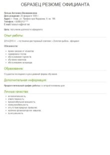 When applying for a position as a cashier waiter, senior waiter or an ordinary employee, it is important to remember the simple but important rules for compiling this document. Consider the key sections that must be included in your resume.