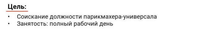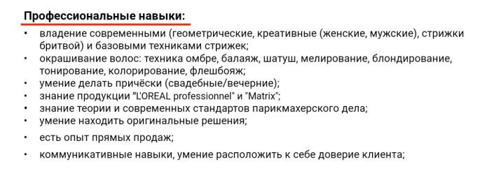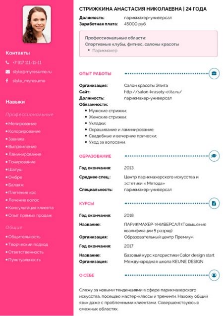 In this paragraph, you can specify the core activities. A hairdresser can perform a wide range of work, but specialize in a specific segment. For example, you are profiling on complex painting techniques and would like to work more as a colorist. Do not be afraid to state this in your resume. Or, for example, you have experience working as a children's hairdresser, you even graduated from distance learning courses in pedagogy and childhood psychology (which is really done today by specialists who aspire to career growth). Be sure to include this in your resume.