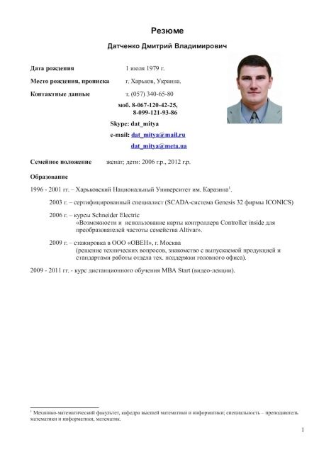 - Mini resume. Unlike the options presented earlier, this format assumes the availability of information about the applicant in a compressed volume, only 1 page. Sections “work experience” and “professional skills” fit on the sheet.