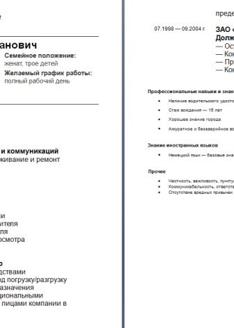 The second sample resume shows that the applicant is looking for a specific position, namely, a driver-guard. As a family driver, this candidacy does not fit. But as a personal driver of a major businessman - that’s what you need.