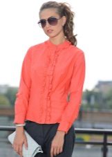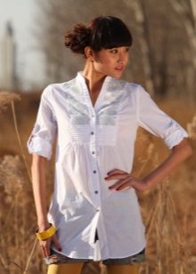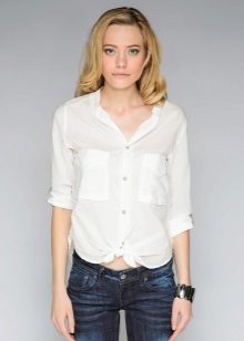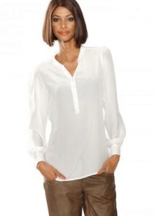 That is the main question that confronts all women. However, the answer to it is quite simple: wear a shirt without a collar with any things. There are no particular boundaries or standards. The rules are no different from those delivered to ordinary shirts.