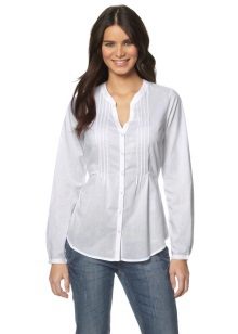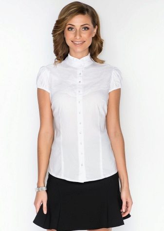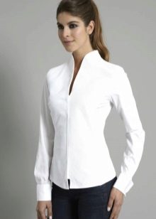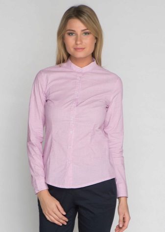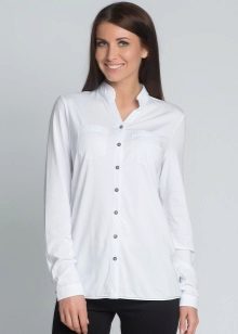 In general, the lineup of shirts without a collar is not particularly different from classic shirts. It can be shirts with a long, short, as well as 3/4 sleeve. Shirts can differ by the presence of a neckline, there are two options: a shirt is buttoned up with all buttons or a V-neck, which creates a certain airiness and lightness, especially suitable for summer models.