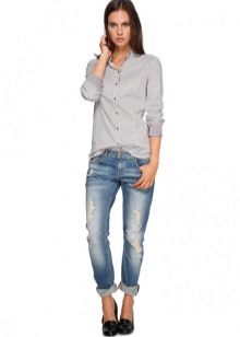 As for jeans, it would be better to wear a shirt out of style. Chiffon patterns will help create a casual, everyday look. Bright and unusual shirts will help diversify your wardrobe. In everyday life, this will be very helpful, and a deep cut will help to open the neck and show the clavicle.