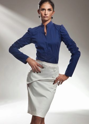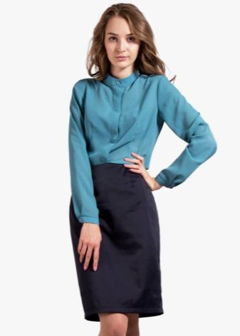 There is nothing easier than creating a balanced and calm look, using a shirt without a collar and a pencil skirt. The blouse can be white with black trim, and the skirt is black, in which case your outfit will be completely harmonious. Most likely, the shirt will need to be tucked into the skirt. The outfit will turn out feminine and strict at the same time. It remains only to add high heels and make a beam.