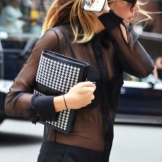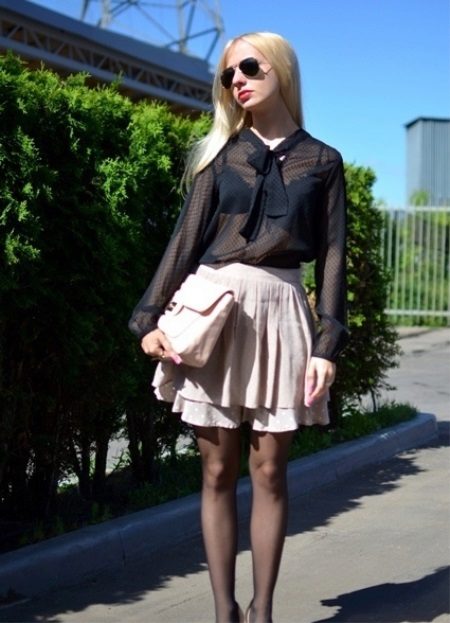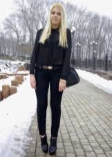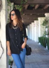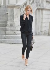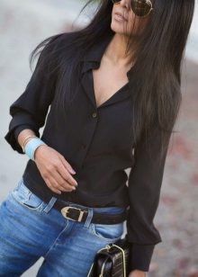 A black shirt can be worn not only with black and blue things.It looks great with red, yellow and white. But if you put on a black blouse with a black bottom, then the image should be decorated with a strap or handbag in a contrasting shade.