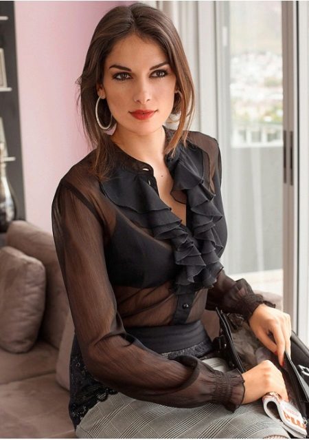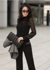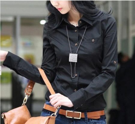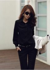 Business women prefer black silk shirts, because they look elegant and rich. Silk models can be combined with classic trousers or a pencil skirt.