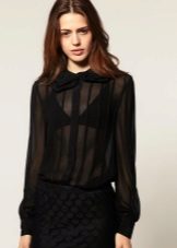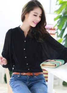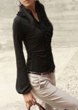 To meet friends, a black blouse can be combined with jeans or a blue skirt. Such a duet looks stylish and simple. For a festive event, a black blouse with a white collar is ideal, and red details will add a certain variety to the image.