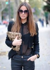 A black blouse will be the perfect solution for the fair sex with an olive complexion. He will give the skin brightness and highlight his face against his background.