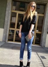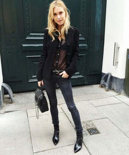 Modern fashionistas often wear a black long-sleeved shirt over a white T-shirt or t-shirt. Such an ensemble looks stylish with different styles of jeans.