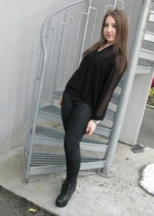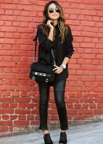 Black tunic shirt refers to the basic wardrobe of not only slim beauties, but also girls with curvaceous shapes. It allows you to lengthen the silhouette, hide extra sentiment on the waist and hips. It can be worn with jeans, leggings or shorts.