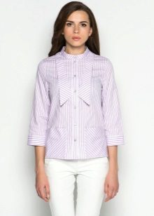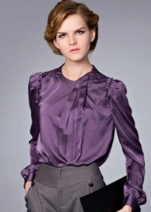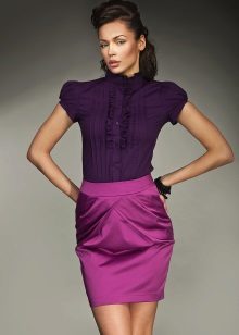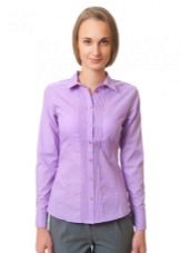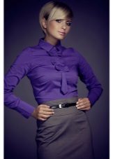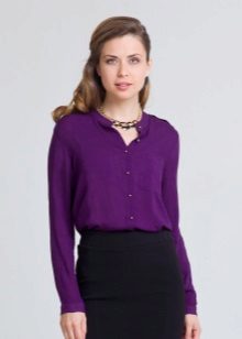 Purple shirt + dress pants or pencil skirt: the perfect kit for a working day at the office or business meeting. At the same time, depending on the tone of the shirt, the lower part of the outfit may be light or dark in color. A business suit can be supplemented with a jacket or waistcoat to the tone of the bottom or a shade contrasting with the shirt.