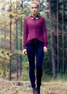 A purple shirt is a very practical and functional wardrobe item, as it can be combined with a variety of things in color and style.