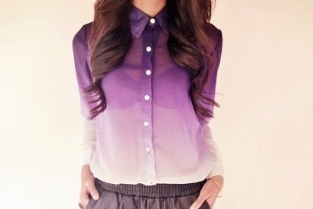 We have already mentioned more than once that the violet color has many beautiful and different shades. Therefore, to find a purple shirt that would advantageously set off the dignity of her appearance, every girl can.