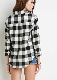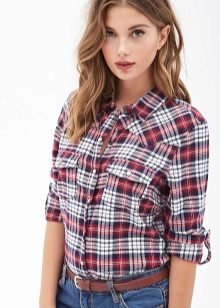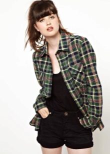 With a skirt. The most harmonious combination will be a straight skirt (mini, midi or maxi - it doesn’t matter) with an unbuttoned flannel shirt. Or another option - a shirt tucked in a skirt-sun to the knee or just above it.