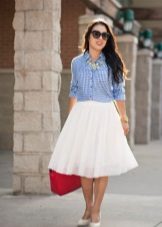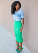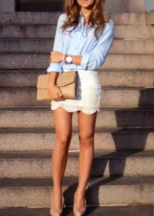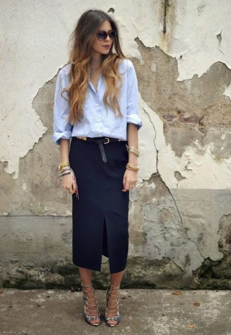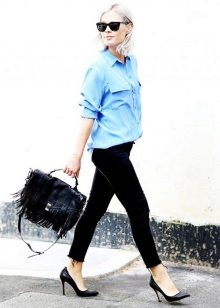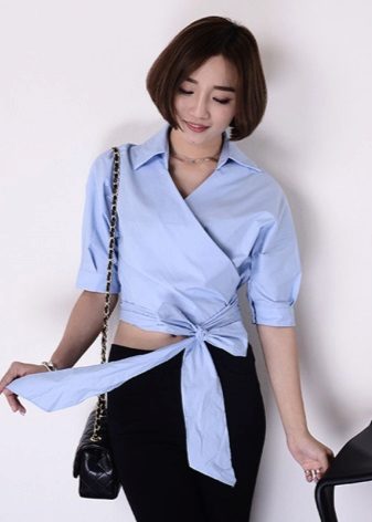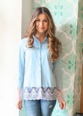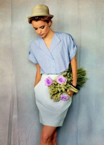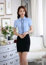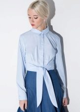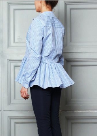 A peplum shirt looks unusual. She emphasizes your waistline. The shirt can be made in various shades, for example, pale blue or cobalt.