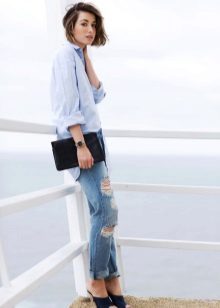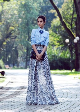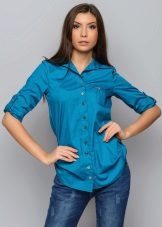 This shirt is made without grooves at the waist and resembles a man's in his cut. Such shirts are most often worn with folded sleeves due to the fact that the sleeves themselves are wide.