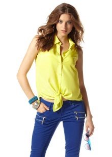 It is important not to overdo it, therefore, tying a shirt at the waist, it is worth leaving a few buttons buttoned on top.