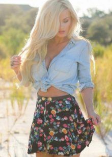 Combine the skirt with a knotted shirt more carefully so that the image does not turn out to be too frank. A miniskirt is best combined with a shirt tied around a belt or hips. For a long skirt in the floor or a medium-length model, the option tied to the waist or belt is perfect.