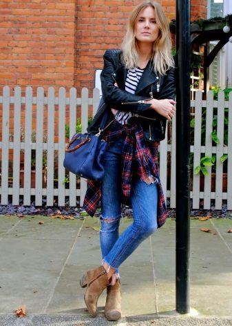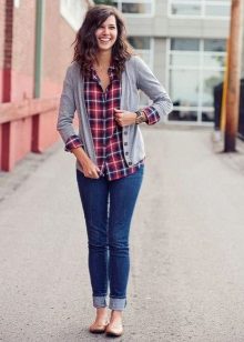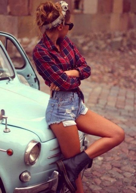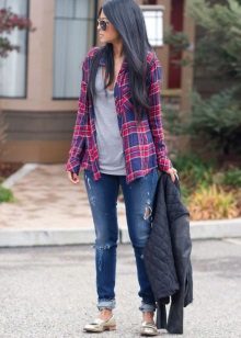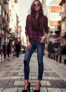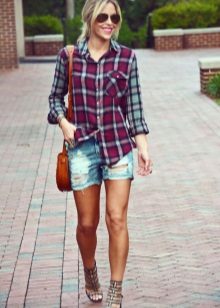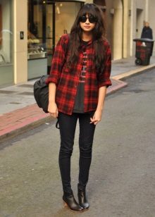 With the right combination of a plaid shirt with other elements of clothing, it looks feminine, at the same time careless and elegant.