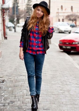 A red blue plaid shirt looks spectacular. When creating a stylish bow, it is worth choosing the right accessories and clothing items.