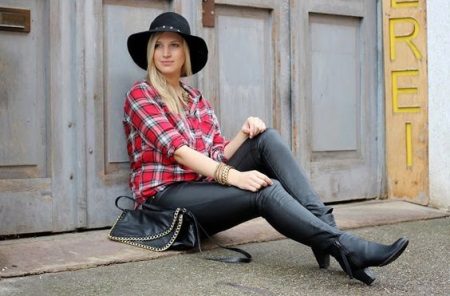 To create an irresistible image in a cowboy style, you should wear a red checked shirt with classic jeans and leather ankle boots.