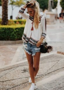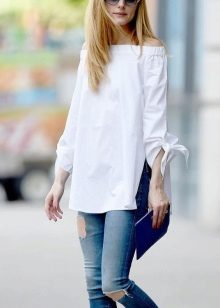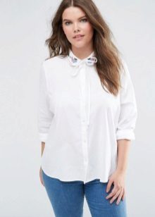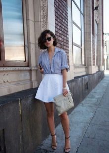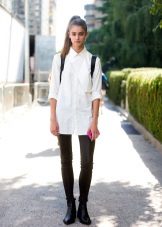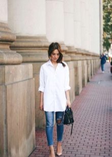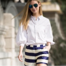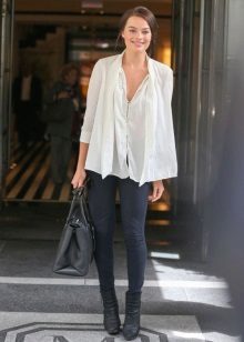 It can be free or tight-fitting, represented by a classic model or made in a masculine style. A voluminous white shirt can be worn tucked into a skirt. Loose models blend nicely with trousers or jeans. To show individuality, you should pay attention to accessories.