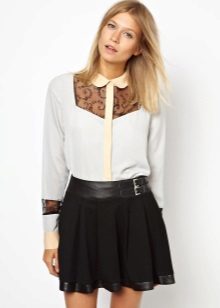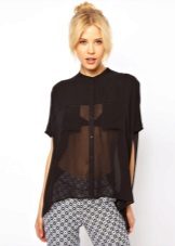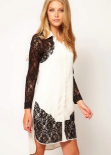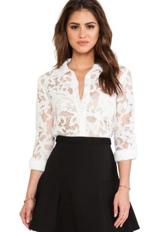 A shirt made of lace with a black mesh looks very beautiful. It can be worn at a party, meeting friends or for every day. Lace shirts look sexy, because they hide only piquant places.