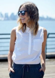 A classic-cut shirt never goes out of style. It is worth paying attention to the details. Models with fluffy sleeves or French cuffs on cufflinks look unforgettable. Sleeveless models are ideal for summer.