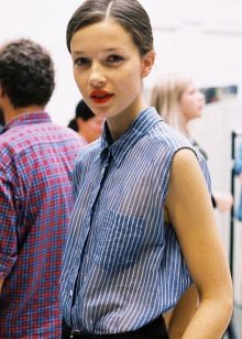 It is worth giving preference to summer sleeveless blouses to create the most comfortable conditions. The elongated model allows you to make the silhouette slimmer. Curvy vertical shirts will suit girls with curvaceous shapes, since such a print also lengthens the figure. Full women should wear exclusively summer shirts made from natural fabrics, which will allow the skin to breathe.