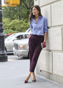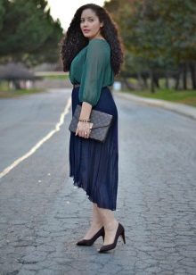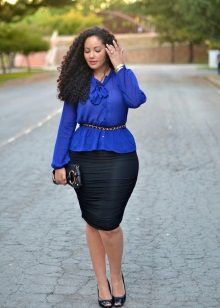 To create an image in a business style, you should wear it with pants of a classic cut or with a pencil skirt. Graceful pumps perfectly complement the irresistible bow. Often for office style, overweight girls choose a peplum blouse or a strictly cut shirt.