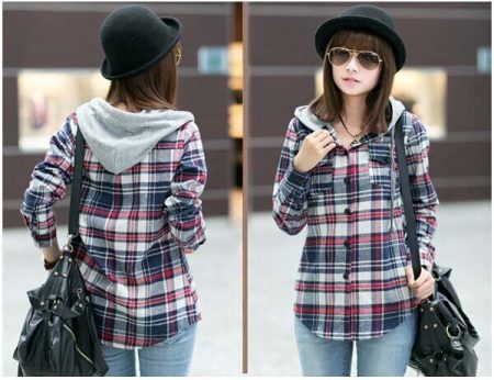 A shirt with a hood is also in trend. Very popular coloring "Scottish" cage. This model often helps create a casual or sporty style.