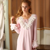 Night shirts made in a romantic style. Such models are usually made of thin transparent or translucent materials and are richly decorated with ruffles and frills. May have flashlight sleeves. The cut can be straight or flared. These elegant shirts are suitable for a special occasion, for example, a romantic evening.