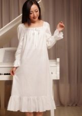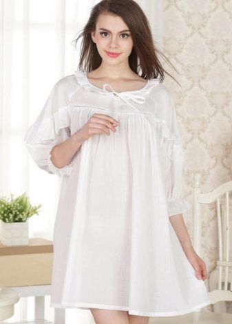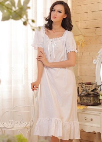 Cotton nightgown. The most popular model for sleeping, which can be found in the wardrobe of almost any woman. It owes its popularity, first of all, to natural, breathable material, simple style, absence or minimal amount of decorative details and decorations. It is made of plain or printed cotton. Perfect for women who prefer convenience and comfort in clothes.