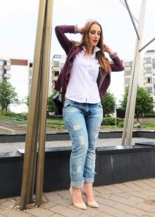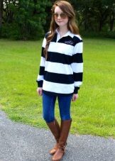 Pants with a polo shirt - in this tandem, jeans are as if specially created for polo, connecting, it turns out an informal walking set. Jeans style is allowed any - from boyfriends to skinny.