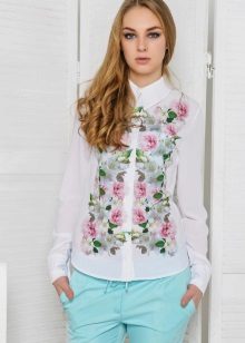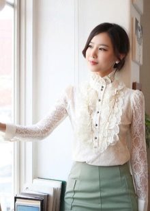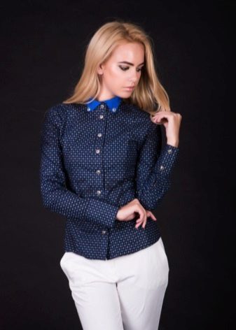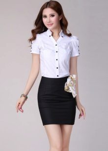 A classic plain shirt tucked into a skirt or trousers will create the image of an office lady. This model will emphasize femininity in the office, without violating the accepted dress code. Any fitted model will look organically with trousers and skirts, although it is better to choose the bottom of the same style as the top.
