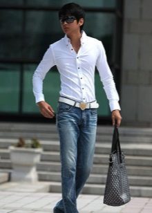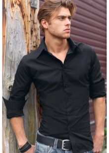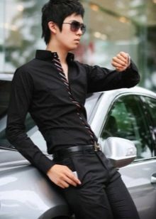 In a business image, a men's fitted shirt is tucked into trousers; for a more formal or solemn appearance, cufflinks and a tie are used as accessories. It is believed that one should wear long-sleeved shirts with a suit, but the latest fashion trends destroy this stereotype and offer various interesting variations.