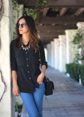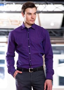 Often, a shirt is used as an outerwear - it is worn on T-shirts, tops, t-shirts or dresses, creating a slightly bully sports style. A silk purple shirt will look appropriate with a pencil skirt or a flared skirt. Complementing the image with various accessories, you can create both a daytime and evening set.