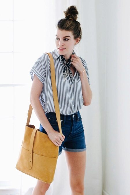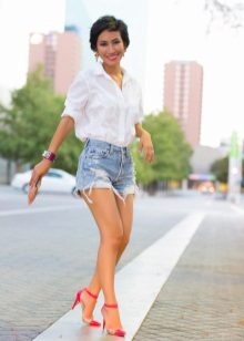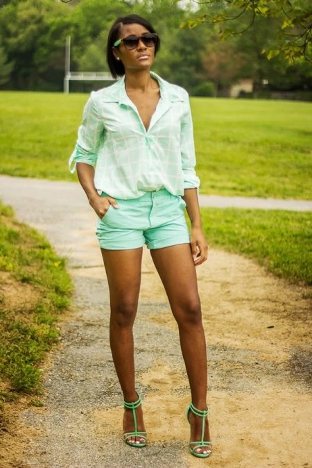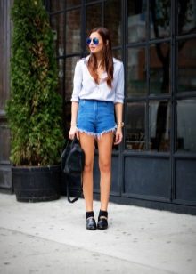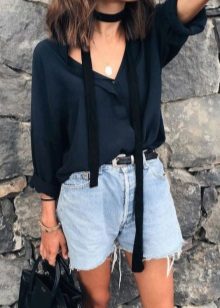 - Denim shorts and a shirt have become timeless classics. You will look as if you have just stepped off the European catwalks. Shorts fit short, slightly elongated or with a high waist. Shabby models look good. The shirt can be chosen absolutely any length. But the style is better to choose a free one. A white, blue or checkered shirt will look good. Effectively roll up your sleeves, tuck your shirt only in the front - this will give originality to your image.
