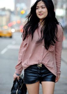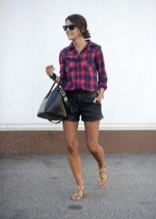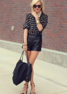 Black leather shorts can instantly smarten up even the laziest of looks. The shirt will suit white, black or denim. Choose the appropriate accessories.