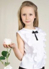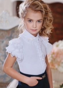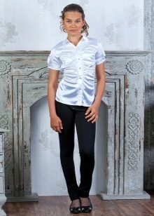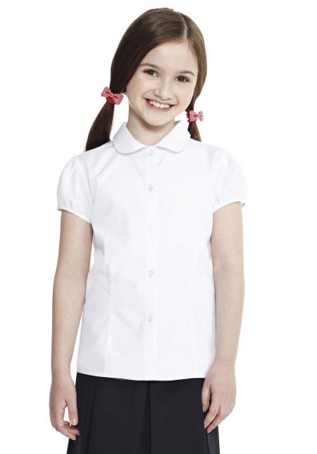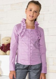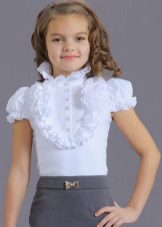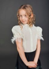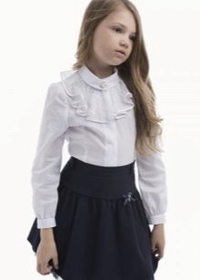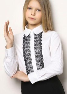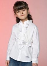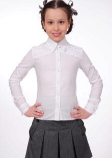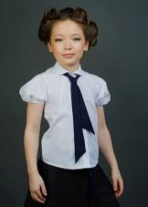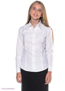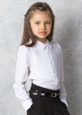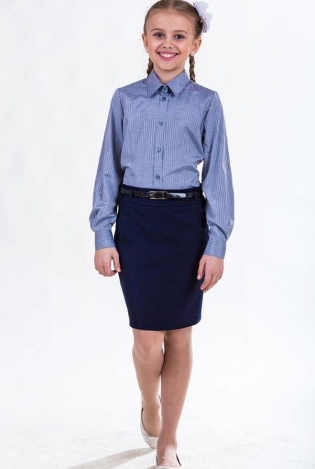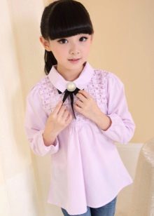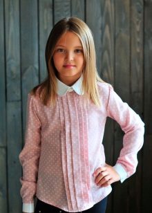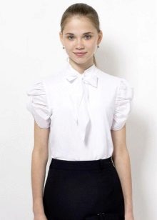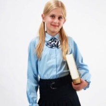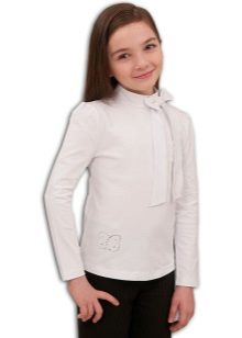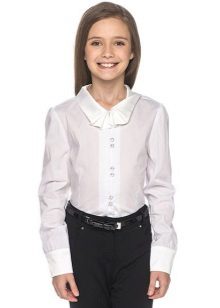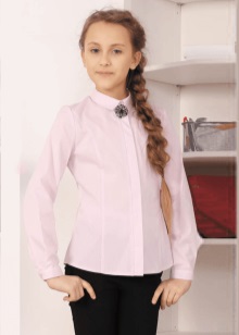 For girls of secondary school age, you can recommend turning your attention to classic shirts in pastel colors. This model is ideally combined with trousers and a skirt. A plain addition to such a shirt will be a plain tie or a neatly tied bow.