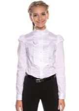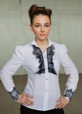 - Smart shirt. Ideal for romance-minded young ladies. As a rule, such a shirt is richly decorated with various bows, ruffles, frills or frills. The elegant model can be performed in a combination of several materials, complemented by lace inserts, etc. Sleeves can be straight and magnificent, narrow and free. The shirt can be complemented by an elegant collar of the original form, frill, decorated with sequins or embroidery.