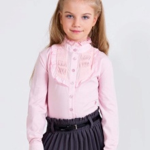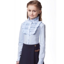 However, white color, with regard to children's clothing, is not always practical, therefore, when choosing a color scheme for school shirts, you should pay attention to pastel color models. Classic and romantic shirts look charming, made in light pink, lilac, blue, light green, sand, gray.