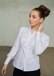 For formal events and school rulers, a classic shirt is perfect. The model can be made of shiny silk or satin, have translucent sleeves, lace trim or other decorative elements.