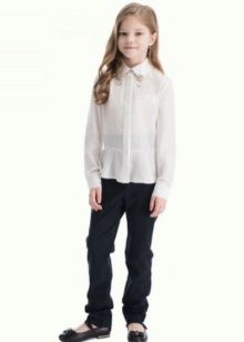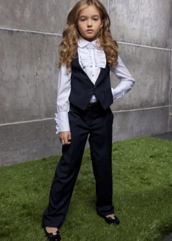 A shirt and pants are one of the most popular and practical sets for schoolgirls of different ages. The shirt may be worn tucked in or run out.As a complement, a vest or jacket is used to match the trousers.