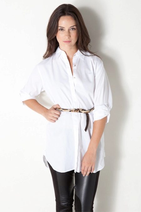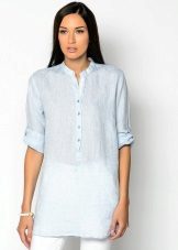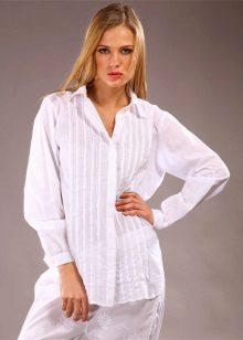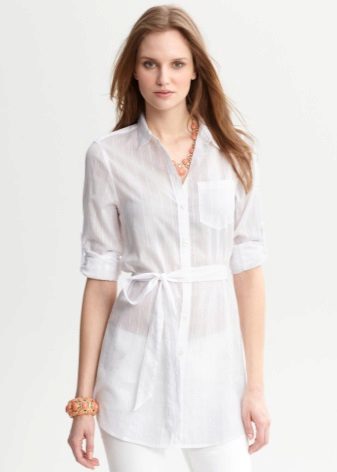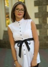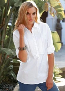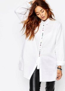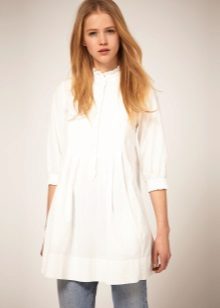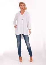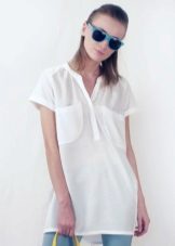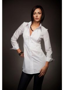Due to its unique combination, it has a business and free style. A white tunic shirt is ideal for the office, while making it more original than with the usual wardrobe items. This is not a classic strict shirt, and not a business dress, but an alternative to them.
